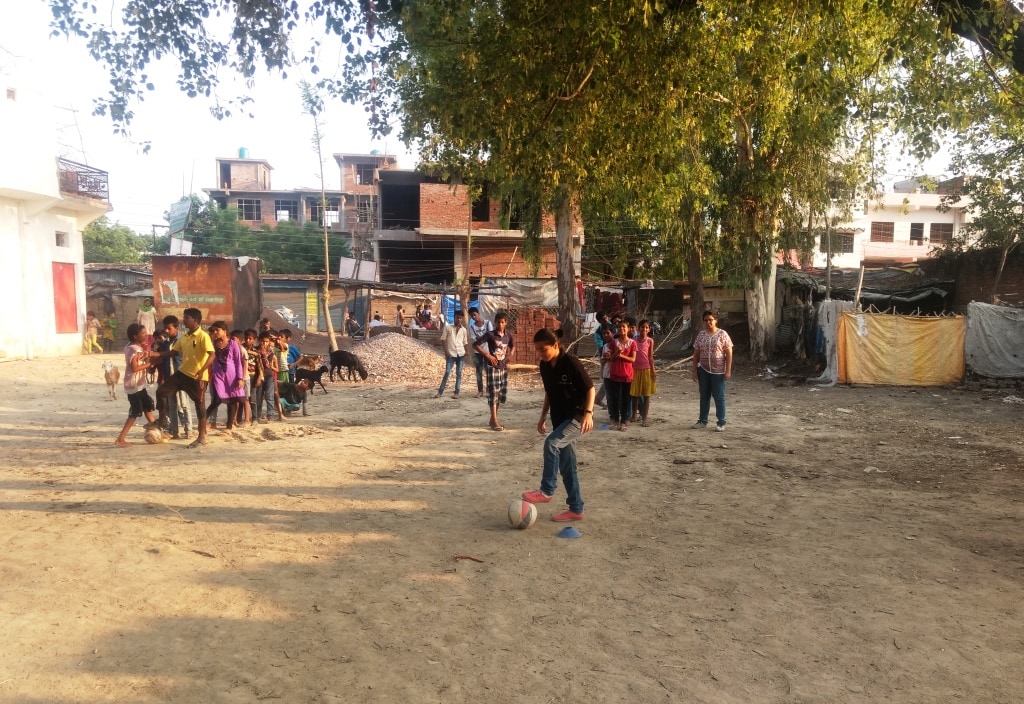 ” Didi, aapka naam kya hai?” (didi, what is your name?) asked the kids, as we stood in a circle ready to begin my first day with Project KHEL. Even before this little yet amusing introduction, the kids in certain locations run up to us welcoming us with “good evening didi, good evening sir” and enthusiastic high-fives.