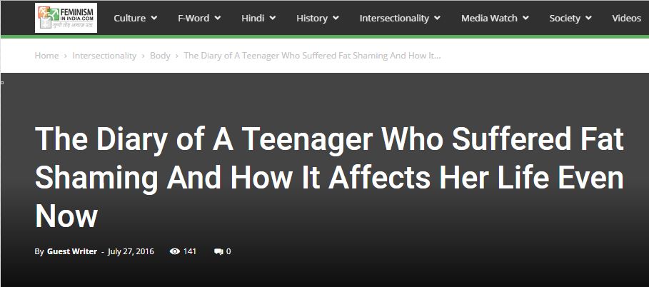As I write this, I am 24. Almost, 25. When I was a teen, I had a boyfriend. Almost, had a boyfriend. I have a happy family. Almost, a happy family. There are and always been a lot of ‘almosts’ because of the kind of fat shaming and bullying I faced as a teenager. It took a lot courage for me to tell myself that nothing that happened or didn’t happen was because of me not being worthy enough. It was because we, as a society, still fail to look beyond the set norms of beauty and define people’s worth on that basis.