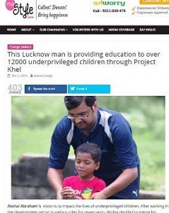 The above article appeared on “Ma style care” (http://www.mastylecare.org/change-maker/providing-education-to-underprivileged-children-through-project-khel/) on 2nd Oct, 2015